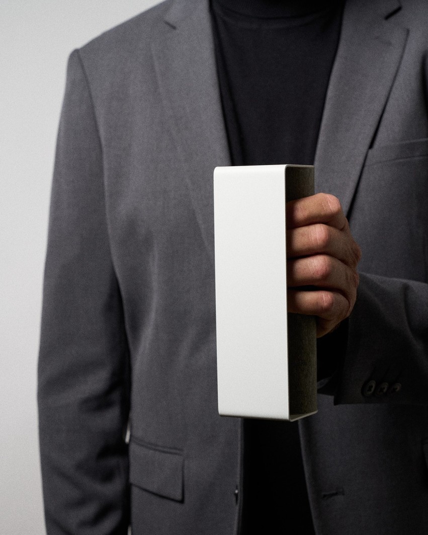 Um design arrojado que harmoniza linhas retas e curvas, oferecendo uma tela moderna para sua mensagem única. Feito de plásticos pós-consumo e aço reciclado.